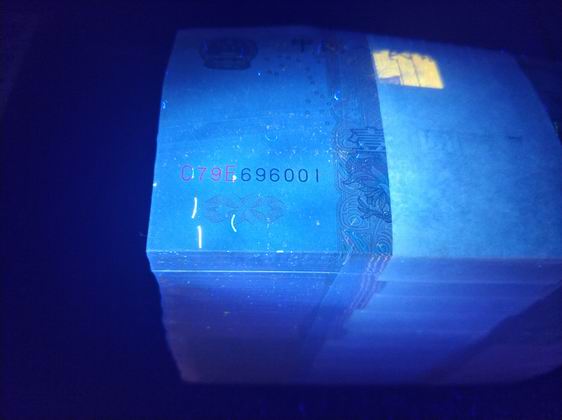 991冠号荧光+数字弱荧光+强金印+部分背金沙题材,原捆未拆一捆号696001,并且内有不同荧光纸张,拆过其他捆发现每张背面都带很强的金印痕迹,且每刀都有一些背金沙瀑布以及黄金条之类的,千奇百怪。。