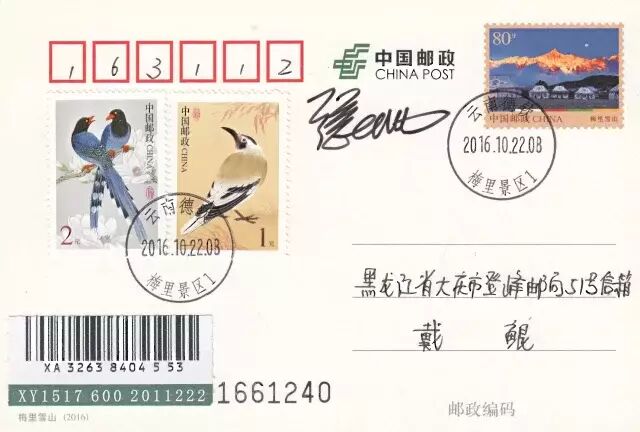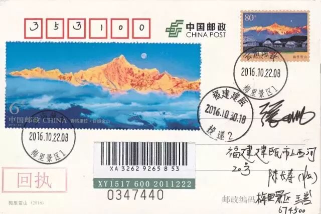 中国邮政定于2016年10月22日发行《梅里雪山》普通邮资明信片1套1枚。