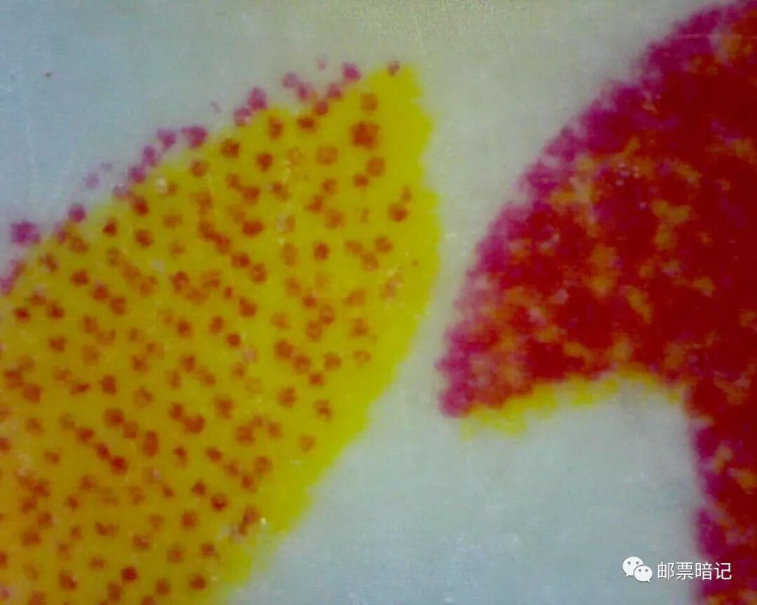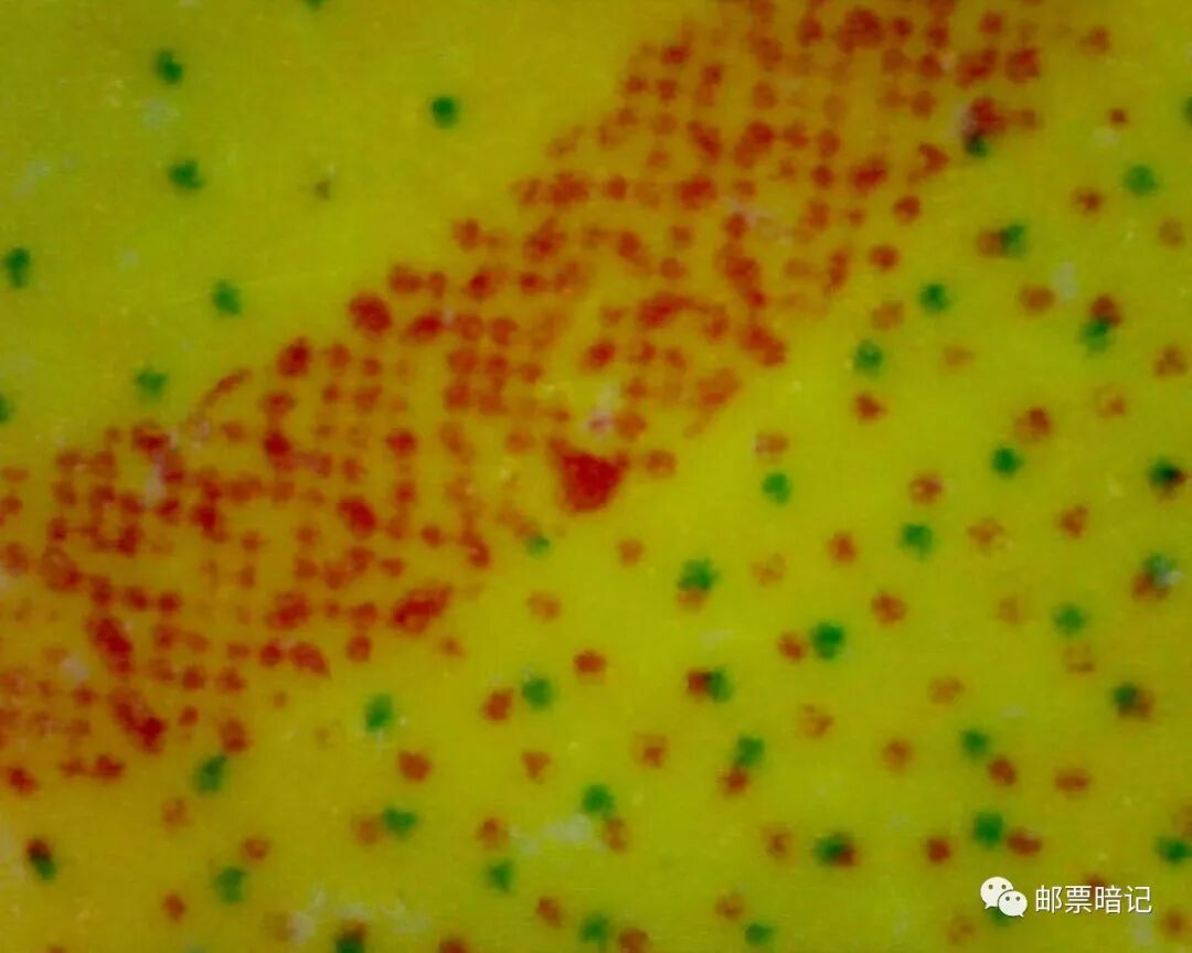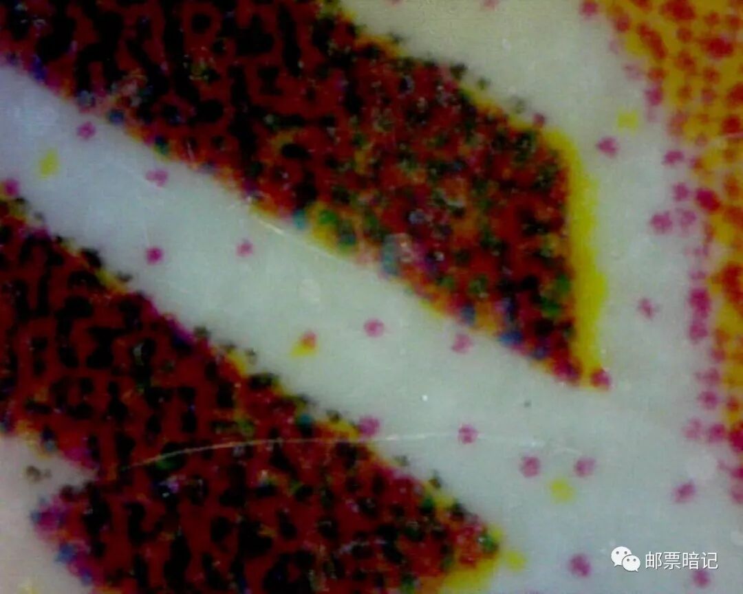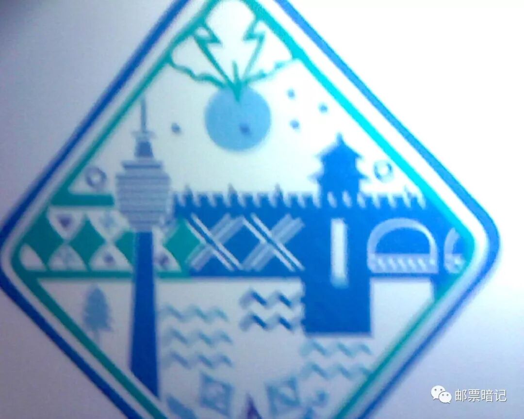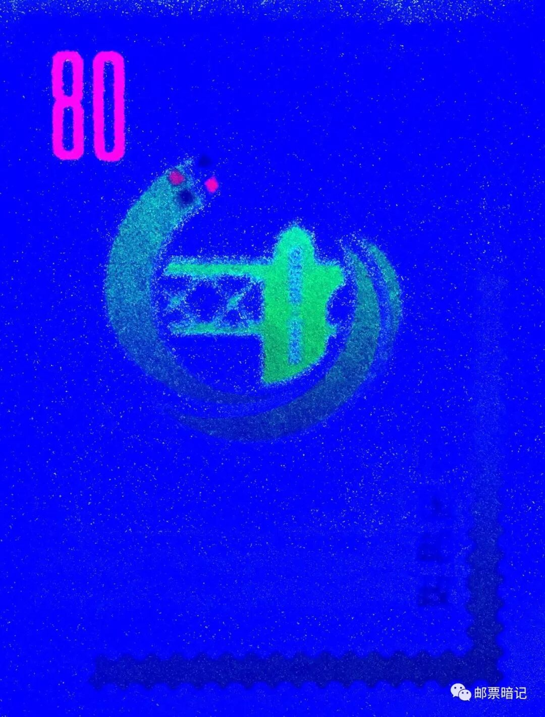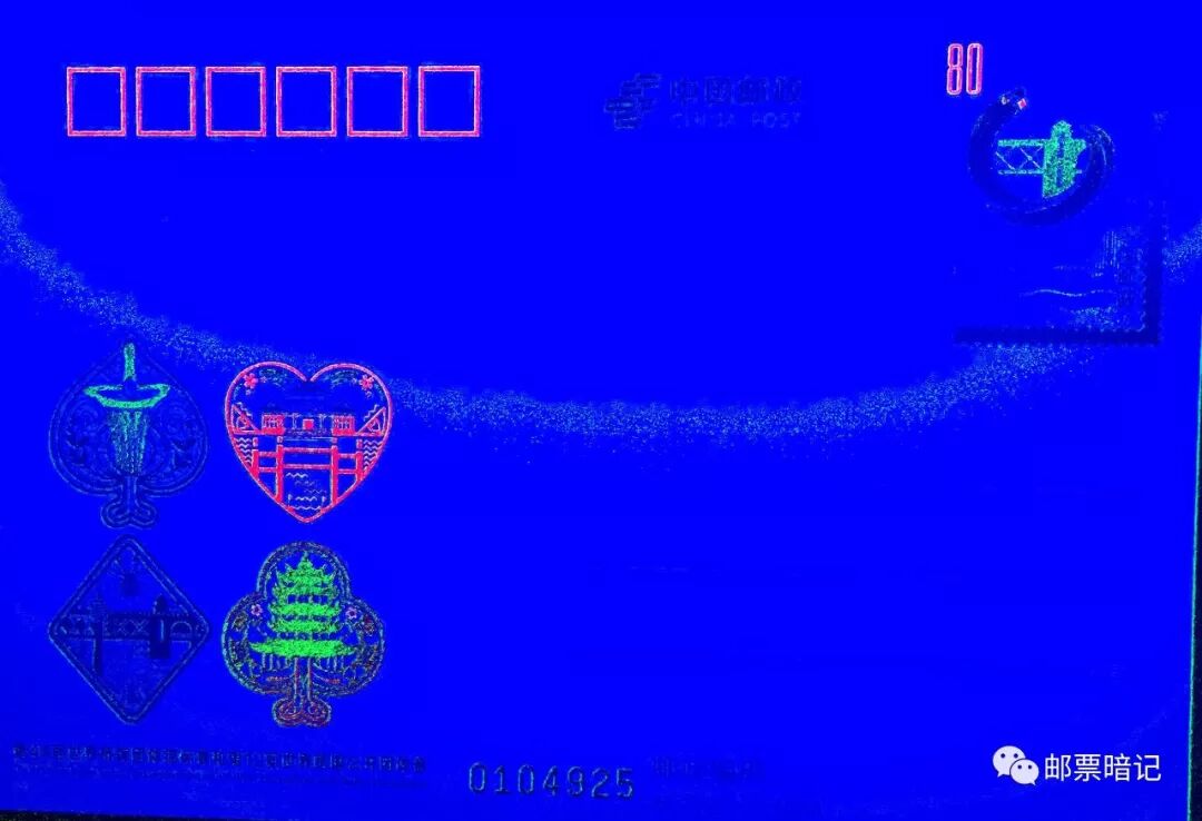 防伪油墨是红色荧光防伪油墨,邮政编码、邮资图和片图中的红色部分在紫光灯下闪闪发光,熠熠生辉。