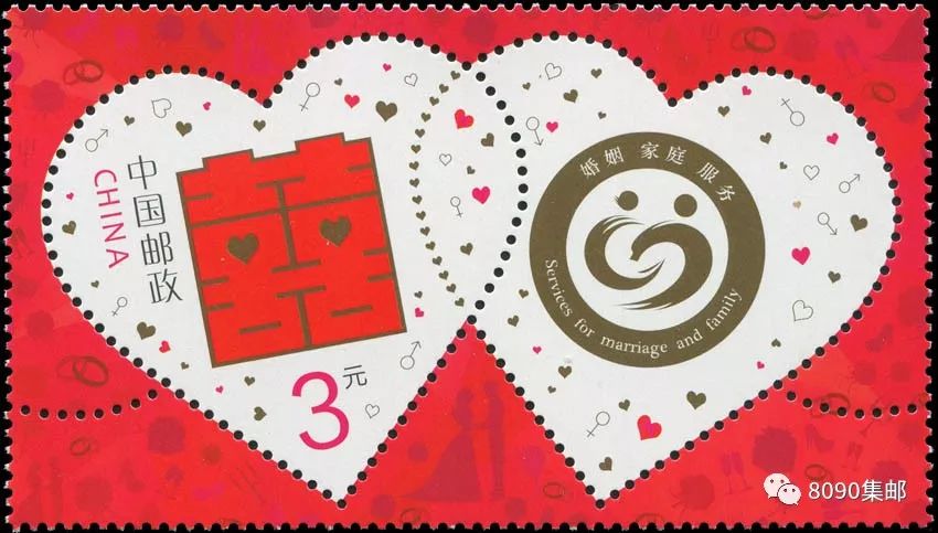 采用心形票型的邮票,中国邮政就发行过一次,是在2014年12月1日发行的《婚禧》个性化邮票,为了纪念首次海峡两岸新人结婚集体颁证仪。