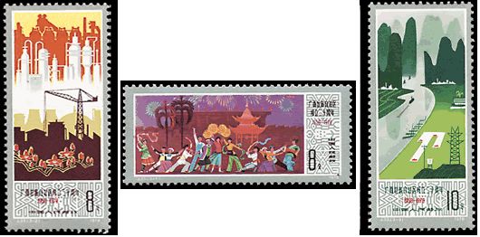 自治区大庆邮票均在1976年后发行。文革结束前的邮票,无其踪影。