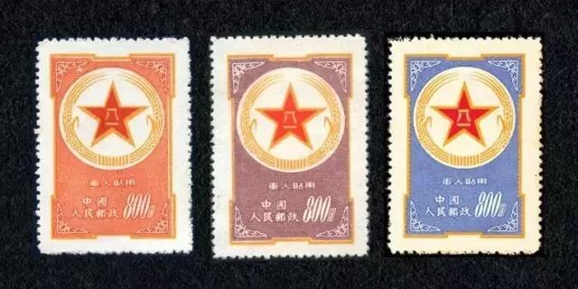 全套“军人贴用“邮票共有3枚邮票,邮票图案是“八一”军徽,同时印有“军人贴用”、“中国人民邮政”字样,面值为800元 (相等新币8分),图幅为21×32毫米,齿孔度数为14。这是新中国第一套军用邮票。