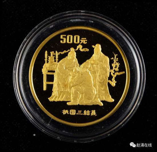 赵涌在线2021年2月 金银币精品成交回顾 01 1995年中国古典文学名著《三国演义》第(1)组-桃园三结义5盎司精制金币一枚 (带盒、带证书) 成交价格:46.83万元(成交时间:2021-02-08 21:37:31) ![]()
