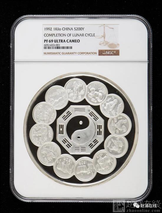 藏品编号:445599003 03 1992年生肖发行12周年大转盘1公斤精制银币一枚 (带盒、带证书、NGC PF69 ) 成交价格:20.68万元(成交时间:2021-02-22 19:11:41) ![]()