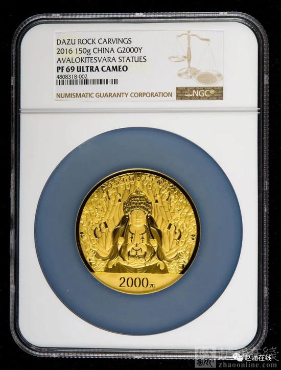 藏品编号:446769002 05 2016年世界遗产-大足石刻150克精制金币一枚(原盒、带证书、NGC PF69) 成交价格:14.91万元 (成交时间:2021-02-22 22:28:01) ![]()