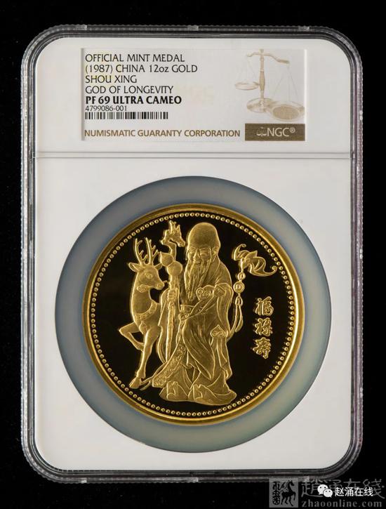 藏品编号:446251001 04 1987年寿星-福禄寿老寿星12盎司金章一枚 (NGC PF69) 成交价格:17.95万元 (成交时间:2021-02-22 22:04:01) ![]()