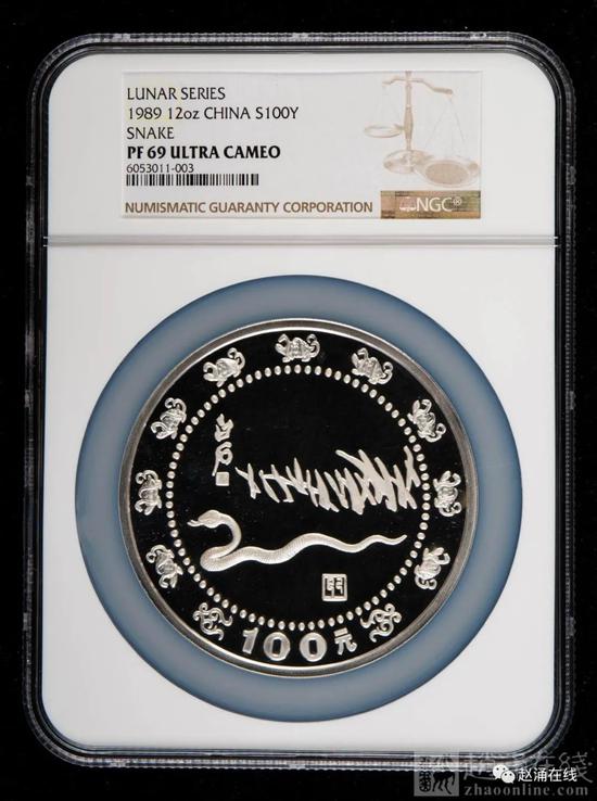 藏品编号:443521024 07 1989年己巳蛇年生肖12盎司精制银币一枚 (NGC PF69) 成交价格:8.71万元(成交时间:2021-02-22 20:51:41) ![]()