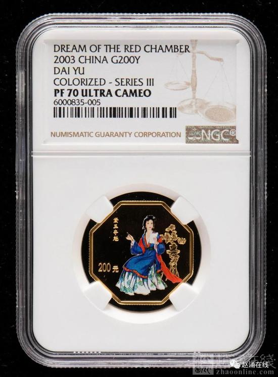 藏品编号:446951018 12 2003年中国古典文学名著《红楼梦》第(3)组-黛玉夺魁1/2盎司八边形精制彩金币一枚 (原盒、带证书、NGC PF70)成交价格:3.15万元(成交时间:2021-02-08 22:18:01) ![]()