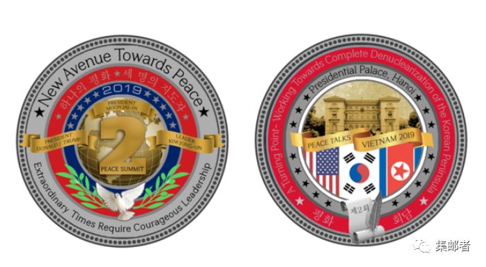 另据美国哥伦比亚广播公司报道,白宫纪念品商店还推出推出了第二次“金特会”的纪念币。此次纪念币正面印了1个大大的“2”,和两国领导人的名字,以及“迈向和平的新路”(New Avenue Towards Peace)几个大字。背面则有美国、朝鲜、越南3国国旗,与“2019越南和平对话”(Peace Talks Vietnam 2019)等字样。这一款纪念币售价100美元(折合人民币670元),将限量发售1000枚。