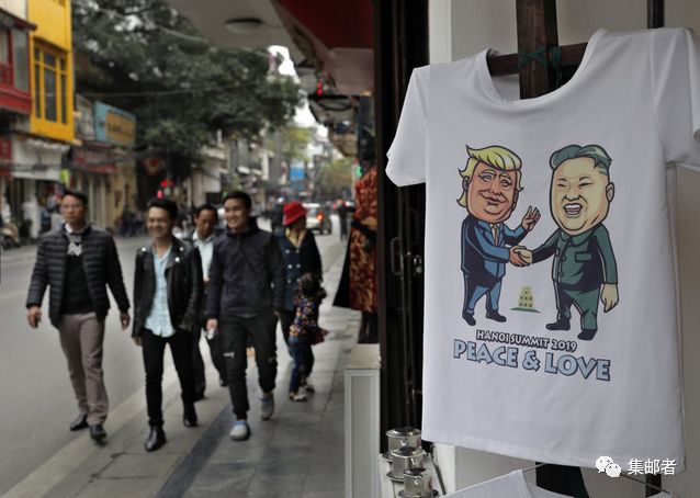 除了纪念邮票,越南街头还能见到不少第二次“金特会”的元素。据路透社报道,河内街头,有不少服装店卖起了第二次“金特会”的纪念T恤。一名店家向记者表示,他已经卖了至少300件纪念T恤了。有报道称,一件纪念T恤售价大约135000越南盾,折合人民币40元。