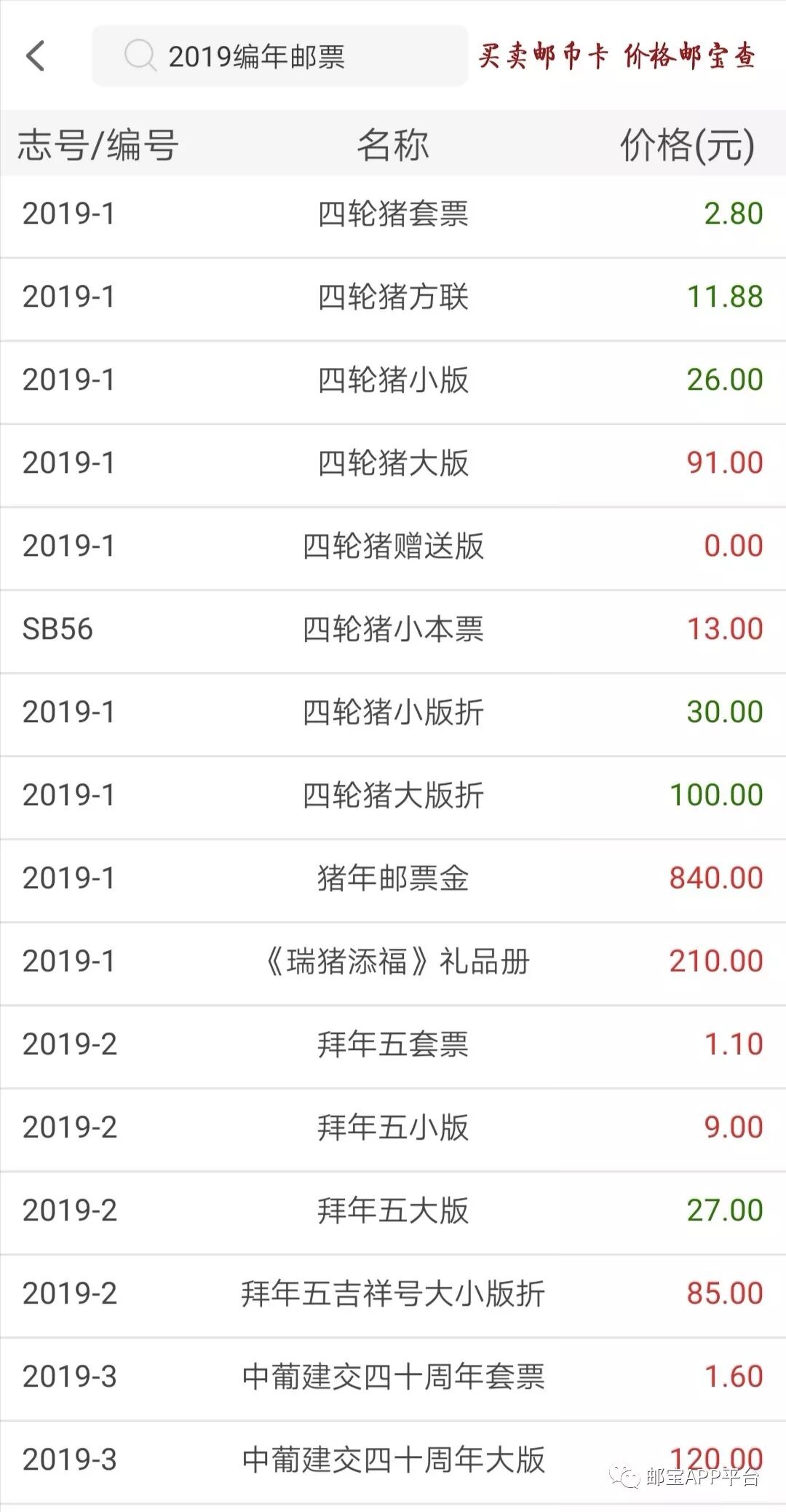 具体产品中,四轮猪大版由95元跌至91元,下跌4.21%;四轮猪小本票最新价格为13元,上涨0.4元;四轮猪小版折由32元跌至30元,下跌6.25%;四轮猪大版折由102元跌至100元,下跌1.96%;猪年邮票金价格稳定,保持在840元;《瑞猪添福》礼品册由218元跌至210元,下跌3.67%;拜年五套票价格稳定在1.1元;拜年五吉祥号大小版折由75元涨至85元,上涨13.33%;水果三小版最新价格为5.7元,下跌0.1元;上合峰会大版稳定在40元;拜年四小版稳定在8元。
