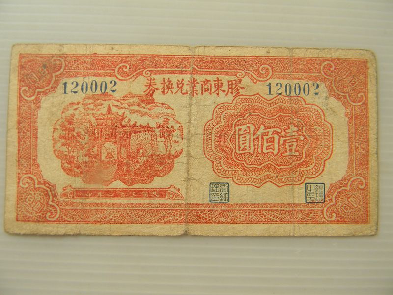 西北银行 壹角, 售 700元。 胶东商业兑换券壹佰壹 售 100元。
