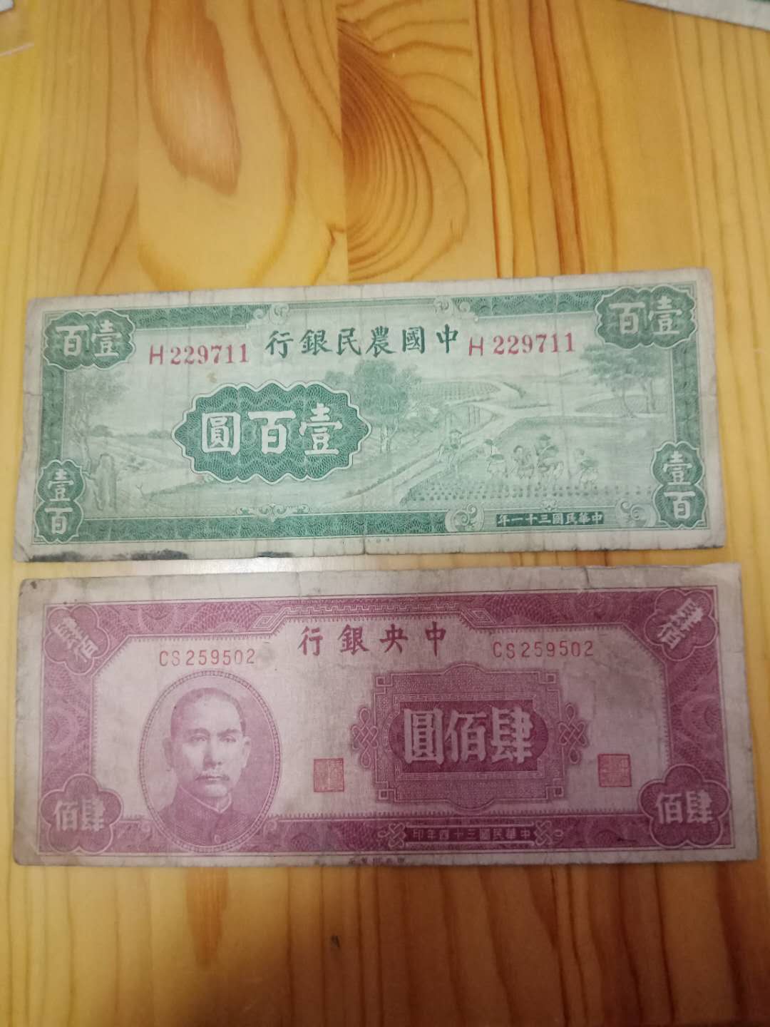 中央肆佰元和农民壹佰各一张-摸鱼集藏