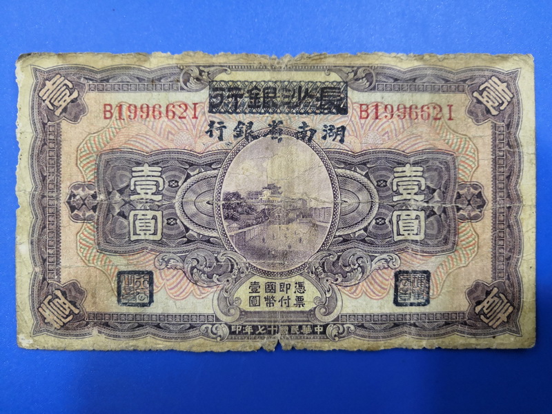 民国17年长沙银行改湖南省银行壹圆-摸鱼集藏