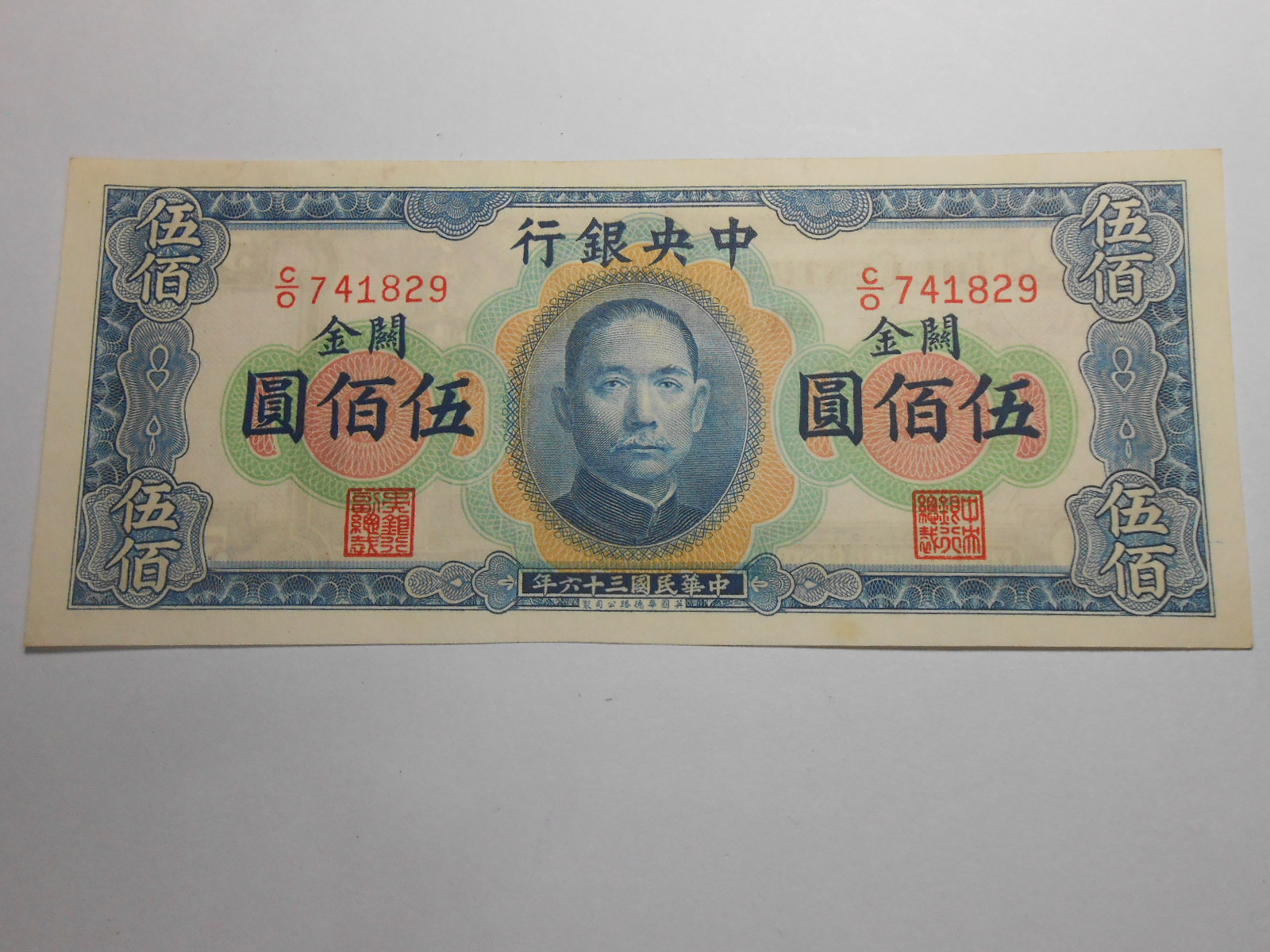 全新横关金500元一张。全品以上。售480元,包真,包邮。